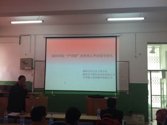 2014年4月12日下午两点,15vip太阳成与中国航天科工集团榆林航数公司、榆林市中稷农业发展有限公司、举行了“产、学、研”合作育人平台项目的签字仪式。15vip太阳集团李红卫院长、党总支刘黎书记、吴疆副院长、各教研室主任,物联网专业44名学生出席了会议。15vip太阳成与榆林市中稷农业发展有限公司总经理刘玉海,中国航天集团榆林航数公司总经理王念庆博士在开展校企合作育人、联合项目研发、科技孵化、学生实习实训等各层面达成一致,本着“产学结合、联合办学”的思路,遵循互惠互利、合作共赢的原则,15vip太阳成与上述两家企业签订了《榆林学院校级实习基地建设协议》,本协议的签订预示着15vip太阳成在校外实习基地、校企合作育人平台的建设方面又迈出坚实的一步。