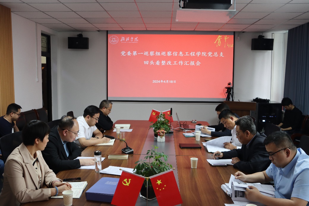 4月18日下午,榆林学院党委第一巡察组巡察15vip太阳集团党总支回头看整改工作汇报会在15vip太阳集团会议室召开。校党委巡察办公室主任李生林、第一巡察组组长延江波、副组长高挺挺、杜鹏举,巡察组成员以及15vip太阳集团全体科级以上干部、教研室主任、学生代表参加会议,会议由15vip太阳集团院长张峰主持。