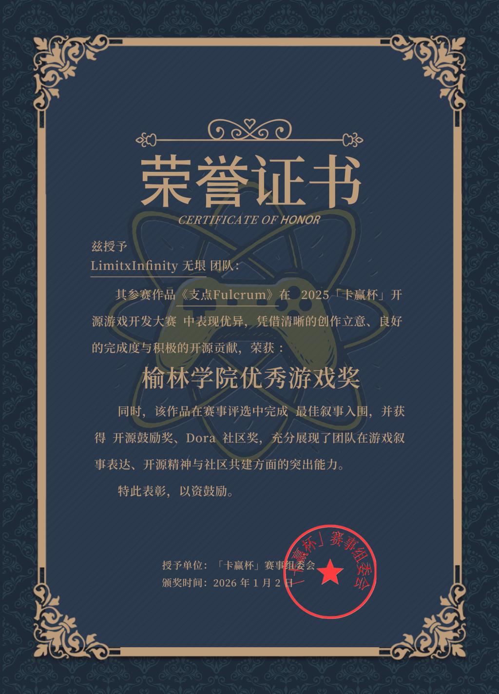 获奖情况:榆林学院优秀游戏奖、Dora社区奖、开源鼓励奖、入围最佳叙事奖