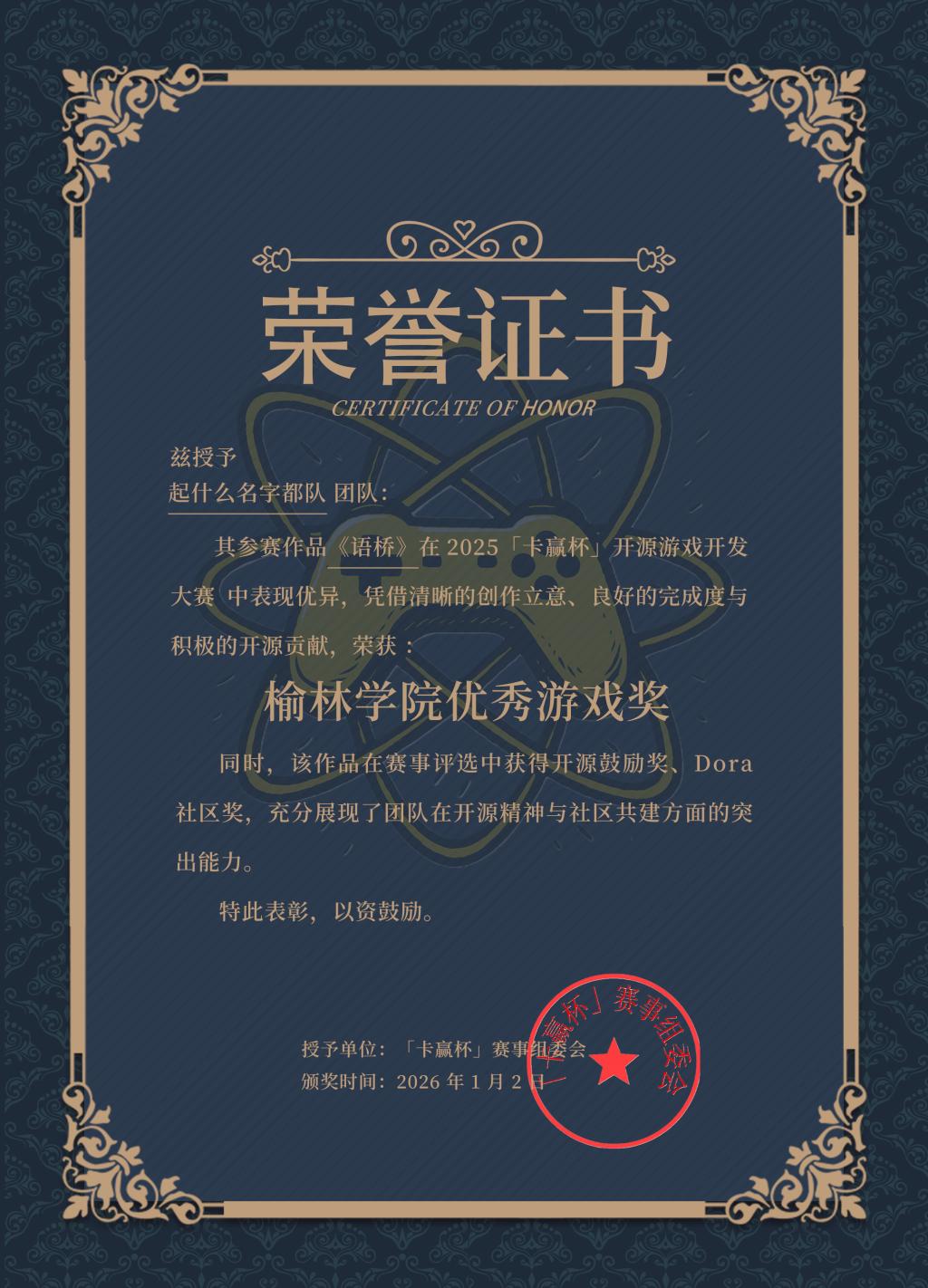 获奖情况:榆林学院优秀游戏奖、Dora社区奖、开源鼓励奖