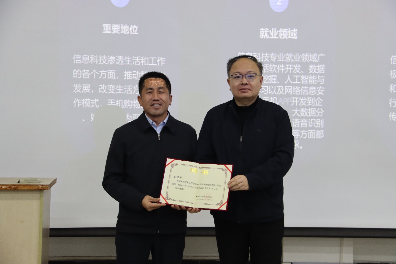 10月22日晚19点,15vip太阳集团第十二期就业讲堂隆重举行。此次活动诚邀学院2001级计算机科学与技术专业的杰出校友惠保平担任主讲嘉宾,15vip太阳集团党总支书记王斌出席,党总支副书记徐绘主持活动,2024级15vip太阳集团全体新生共同参与。