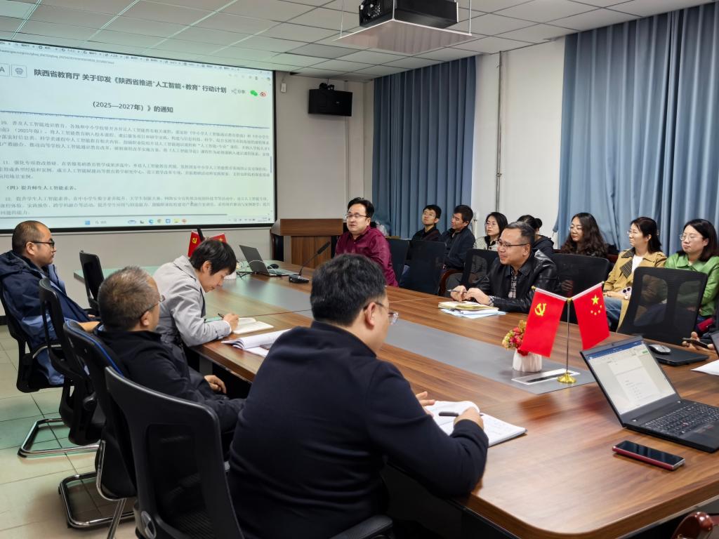 会议首先学习了《陕西省推进“人工智能+教育”行动计划(2025—2027年)》。学院将紧扣行动计划,聚焦教育数字化转型与智能化发展方向,计划布局2个左右优质学科专业,依托人工智能产业学院建设人工智能学院,打造“人工智能+教育”省级重点实验室,构建人工智能赋能教育教学与科研创新的示范体系。学院将重点培育20名左右“AI+教育”骨干教师,形成一支跨学科、复合型、创新型师资队伍;打造一批“AI赋能课堂”“AI助研平台”和“AI共育案例”,建设典型“人工智能+教育”应用场景,推动学校在陕西教育智能化发展中形成示范引领。