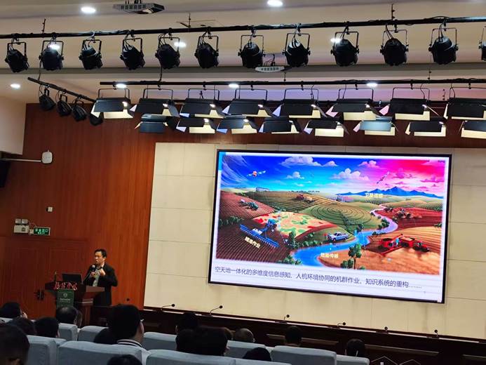 在讲座中,聂鹏程教授结合自身在光谱检测、新型传感器、数字农业与农业物联网等方向的研究成果,深入解析了低空经济与人工智能技术融合赋能农业的前沿进展。他指出,随着“空—天—地”一体化智能体系的成熟,农业信息获取和管理正从传统经验型向数据驱动型转变。以无人机为代表的低空感知技术,通过空地协同监测与智能分析,正在突破传统农业在大面积监控、精准施肥、病虫害防控等环节的瓶颈。聂教授重点介绍了他团队提出的“1+12+N”农业全域数字化管理体系:即一个智慧农业指挥中心、十二个智能无人机机场和多个业务应用模块。该体系结合AI识别、遥感监测与资源管理,实现了对作物生长态势分析、智慧植保、农田非粮化监测等多场景应用,显著提升农业生产的精准化与可持续性。他强调,未来农业数字化不仅要降本增效,更要在土地资源保护与绿色转型中发挥引领作用。最后,聂鹏程教授通过多个实例——从无人机精准喷洒到无人船田间巡检——展示了AI技术在农业全产业链中的创新应用,为在场师生带来了直观而震撼的科技体验。